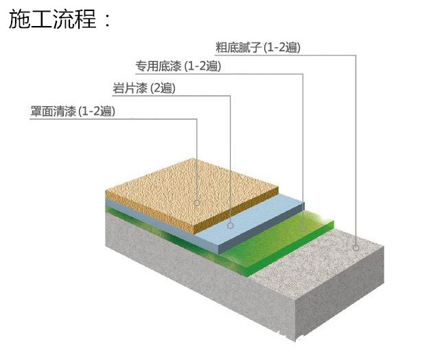 本產(chǎn)品采用超耐水白性硅丙乳液和天然花崗巖巖片等助劑精制而成具有花崗巖石的裝飾效果漆。