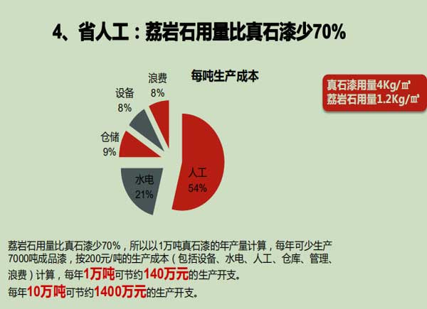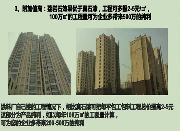 荔巖石漆是一款外墻涂料產(chǎn)品,突破了傳統(tǒng)真石漆需要大量彩砂及多彩漆需要保護(hù)膠原材料的屏障,全新的配方、全新的外墻理念,水的價(jià)格石的藝術(shù)體現(xiàn),沖破了傳統(tǒng)生產(chǎn)思維。